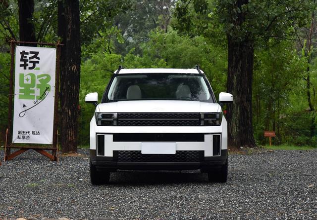 现代胜达的外观看起来很硬朗,包括大灯组也是采用有棱有角的造型,日间行车灯呈现出字母H的形状,和前保险杠的装饰板形状一样,为车头部分提升了辨识度,前进气格栅和两侧的大灯组连接在一起,视觉上突显出整车的宽度,同时还为前脸增加了层次感,在现代胜达的车头前方配备了摄像头和雷达,具有360全景影像和自适应巡航功能。