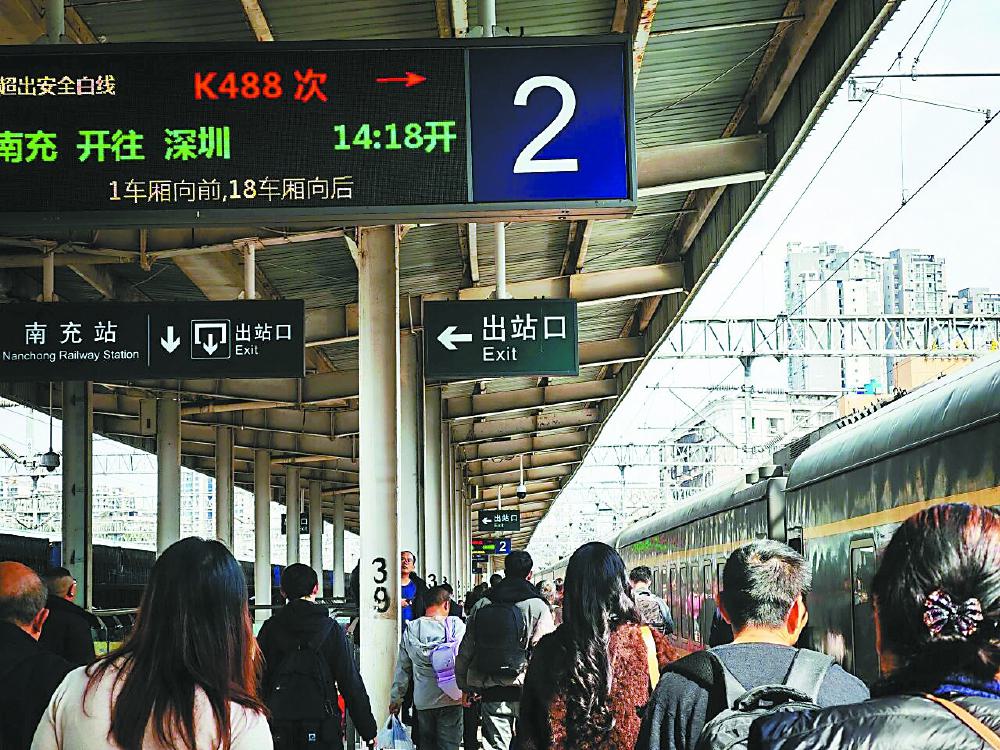 南充火车站同样高位运行,高峰时期开行列车99列,其中加开出省客运列车21列,含杭州、福州、南京、深圳、东莞东等方向始发出省列车7列,为外出务工人员提供了极大便利。整个春运期间,该站共计发送旅客63.2万人次,日均发送旅客超1.58万人次。